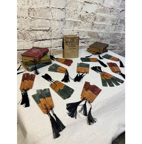 งานฝีมือเรซิ่นและที่คั่นหนังสือไม้ พร้อมด้วยงานศิลปะเรซิ่นที่สร้างสรรค์และผิวไม้ธรรมชาติที่เรียบเนียน