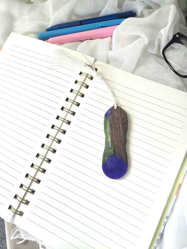 งานฝีมือเรซิ่นและที่คั่นหนังสือไม้ ที่คั่นหน้าหนังสือทำมือที่มีดีไซน์ไม้ธรรมชาติและเรซิ่นตกแต่ง