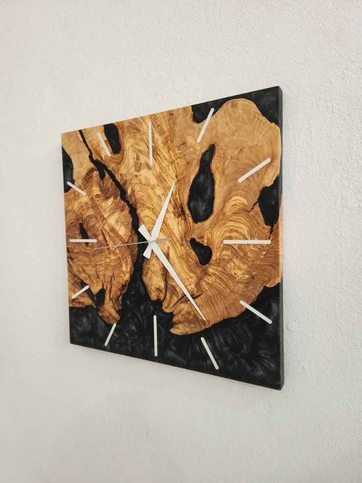 นาฬิกาแขวนผนังงานฝีมือเรซิ่น ตกแต่งด้วยไม้ ทำด้วยมือ ทนทาน ใช้งานได้จริง สวยงามและสง่างาม เหมาะสำหรับห้องนั่งเล่นและห้องนอน
