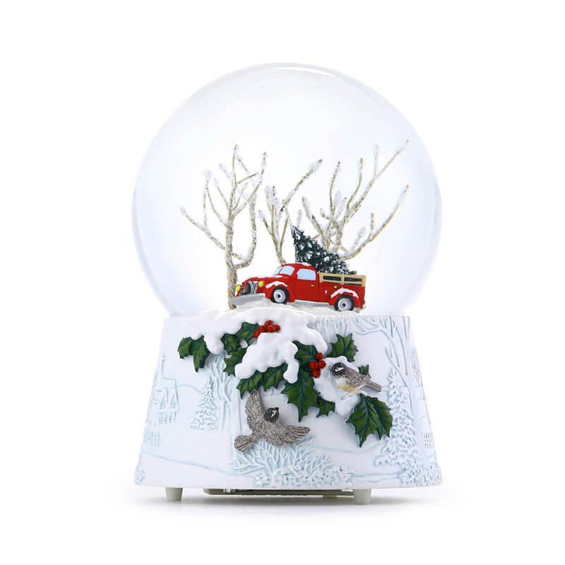 กล่องดนตรีลูกโลกหิมะเรซิ่นคริสตัลพร้อมไฟ LED เปลี่ยนสีได้ ทาสีด้วยมือ สีตามสั่ง