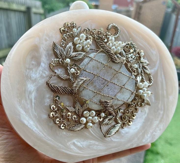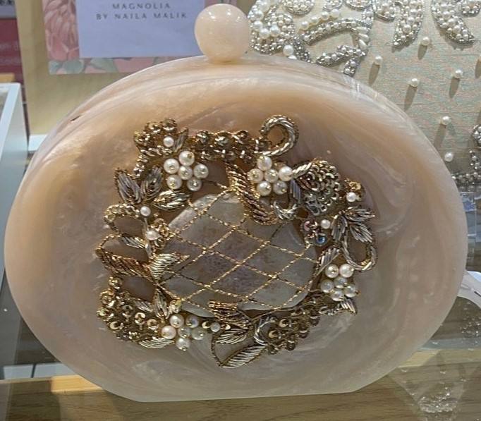 กระเป๋าคลัทช์ตอนเย็นเป็นมิตรกับสิ่งแวดล้อมสไตล์ดอกไม้ขัดเงาทรงสี่เหลี่ยมผืนผ้าทำจากเรซินสั่งล่วงหน้า