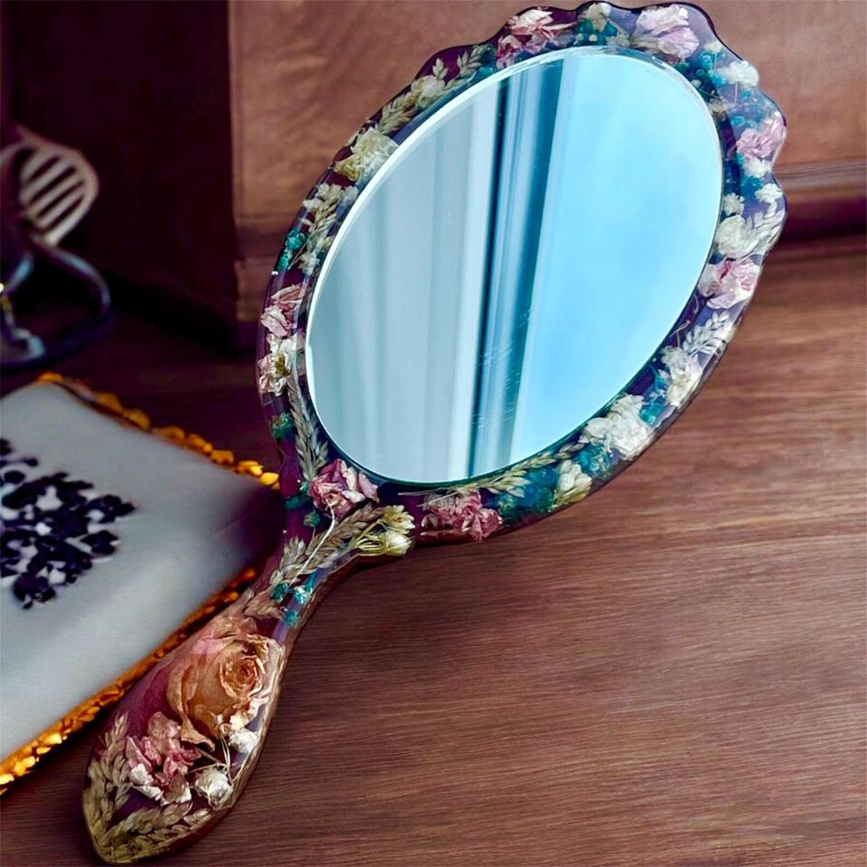 กระจกมือถือเรซิ่นเคลือบเงาเรียบเนียน เหมาะสำหรับการแต่งหน้าในชีวิตประจำวันหรือใช้เพื่อการตกแต่ง เพิ่มความมีสไตล์