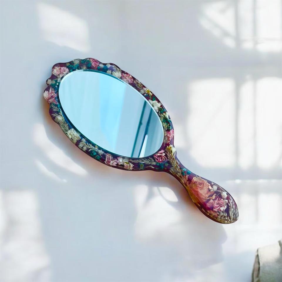 กระจกมือถือเรซิ่นเคลือบเงาเรียบเนียน เหมาะสำหรับการแต่งหน้าในชีวิตประจำวันหรือใช้เพื่อการตกแต่ง เพิ่มความมีสไตล์