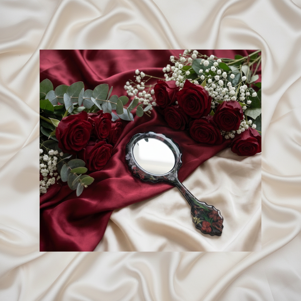 กระจกมือถือเรซิ่นเคลือบเงาเรียบเนียน เหมาะสำหรับการแต่งหน้าในชีวิตประจำวันหรือใช้เพื่อการตกแต่ง เพิ่มความมีสไตล์