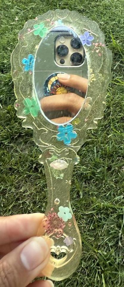 กระจกมือถือเรซิ่นเคลือบเงาเรียบเนียน เหมาะสำหรับการแต่งหน้าในชีวิตประจำวันหรือใช้เพื่อการตกแต่ง เพิ่มความมีสไตล์