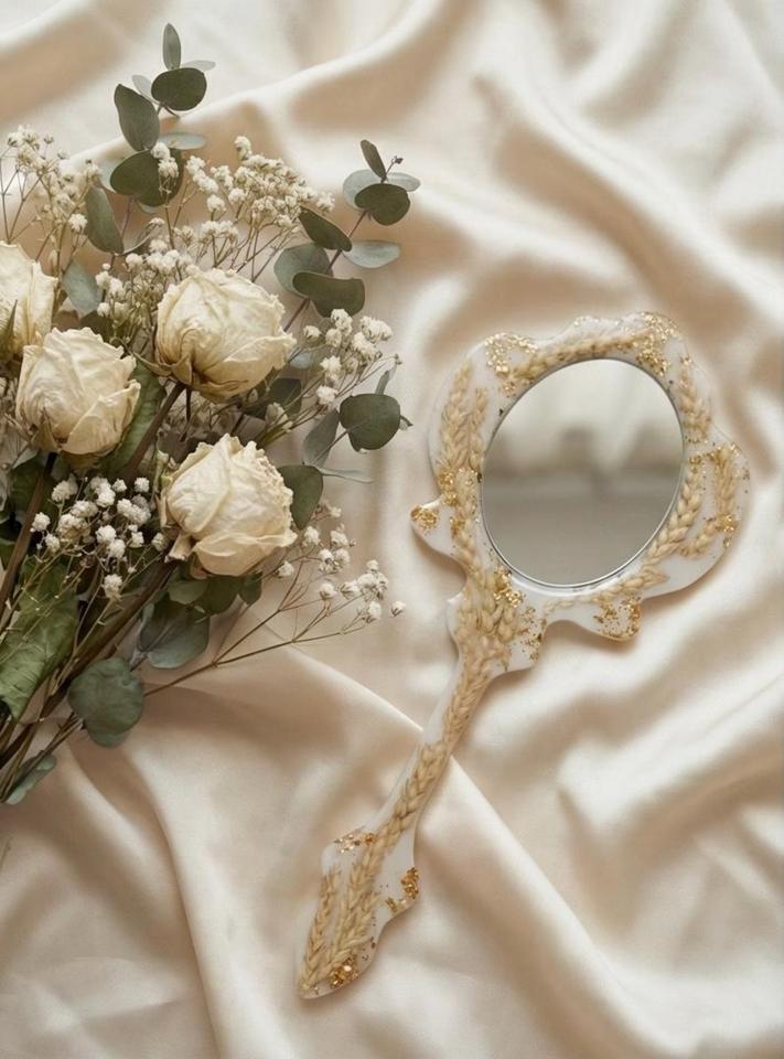 กระจกมือถือเรซิ่นเคลือบเงาเรียบเนียน เหมาะสำหรับการแต่งหน้าในชีวิตประจำวันหรือใช้เพื่อการตกแต่ง เพิ่มความมีสไตล์