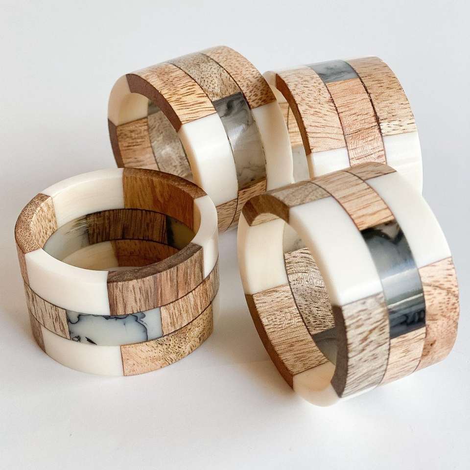 แหวนอะเกตและโลหะสีสันสวยงาม ขัดเงาอย่างดี งานฝีมือจากเรซิ่น สำหรับใช้เป็นแหวนรองผ้าเช็ดปากในงานแต่งงาน