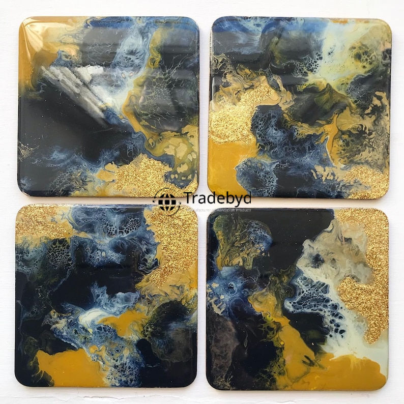 Resin Handmade Elegant Luxury Coaster Set 4X4 Inches Square Premium Quality Available in Different Colors Tradebyd