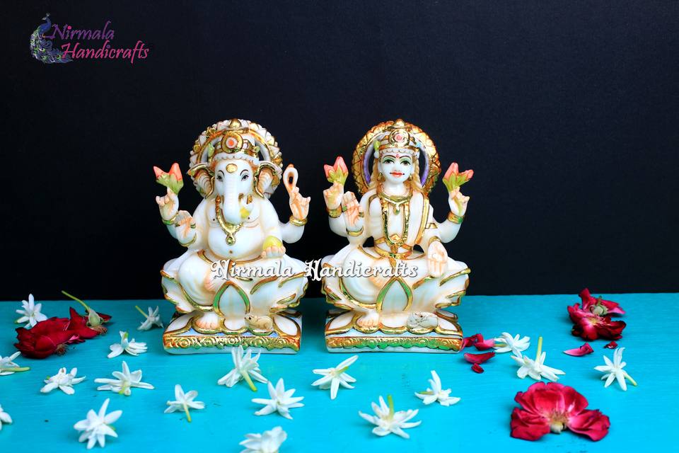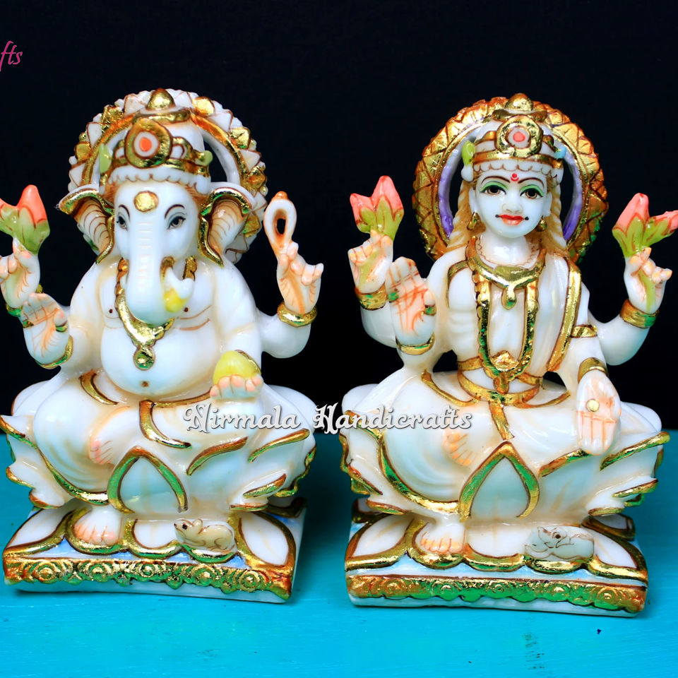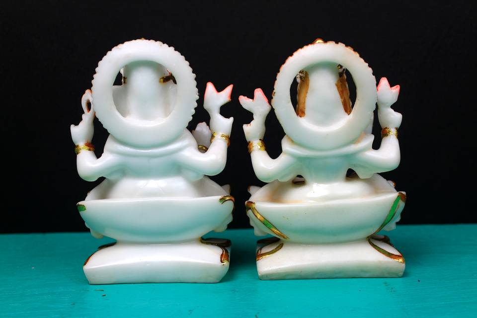 งานหินอ่อน รูปปั้นพระพิฆเนศและพระแม่ลักษมี งานหิน