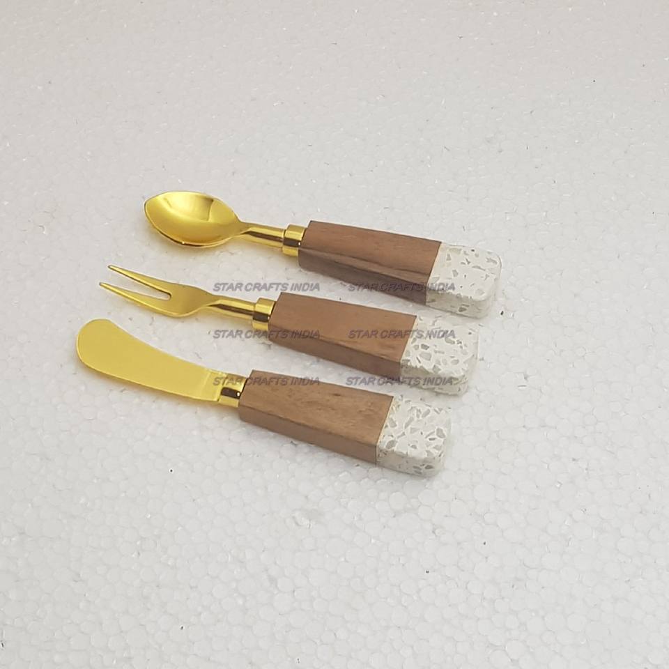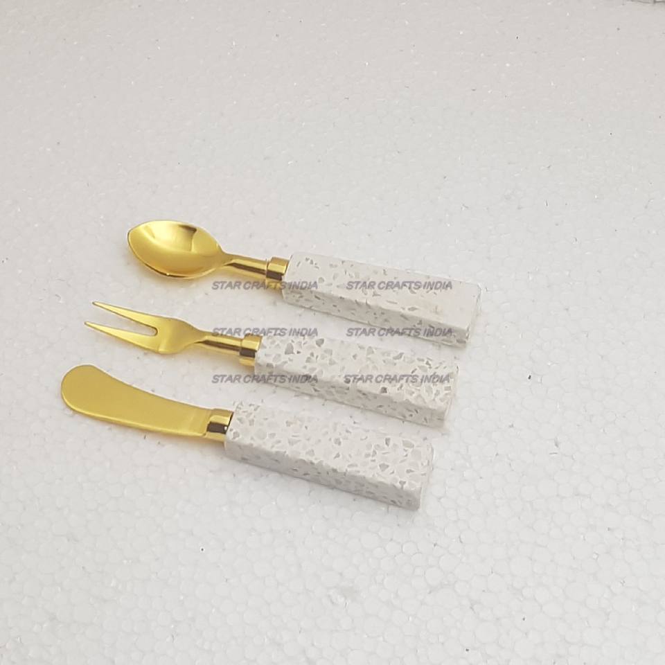 ชุดช้อนส้อมมีดด้ามจับเรซิน/หินอ่อนชุดช้อนส้อมมีดโลหะใหม่ล่าสุดสามชิ้น