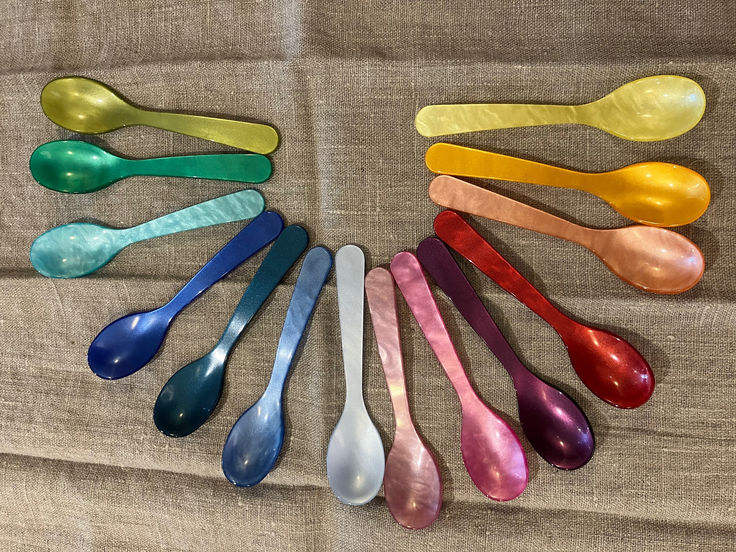 ช้อนเรซิ่นเคลือบมุกขัดเงาสำหรับอาหารค่ำ เป็นมิตรกับสิ่งแวดล้อม อุปกรณ์เสริมสำหรับงานเลี้ยง โดยงานฝีมือซานียา