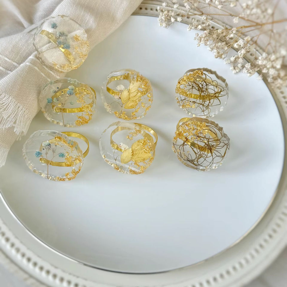 แหวนรองผ้าเช็ดปากเรซิ่น สำหรับร้านอาหาร งานแต่งงาน งานเลี้ยง ตกแต่งโต๊ะ ผลิตด้วยมือ ผู้ผลิตแหวนรองผ้าเช็ดปากเรซิ่น แหวนรองผ้าเช็ดปากแบบกำหนดเอง