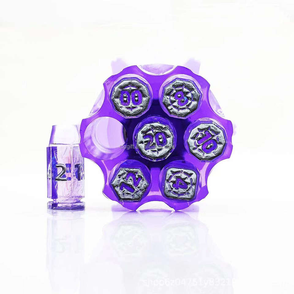 ชุดลูกเต๋าทรงกระสุนเรซินโพลีเมอร์7ชิ้นพร้อมกล่องใส่ปืนลูกโม่สำหรับของขวัญประเภท DND