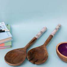 ชุดเซิฟเวอร์สลัดเรซินด้ามขัดด้วยเรซินของตกแต่งโต๊ะใช้กับเครื่องล้างจานได้อย่างปลอดภัยมีช้อนเสิร์ฟและส้อม