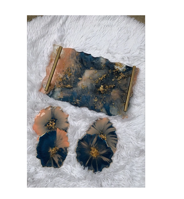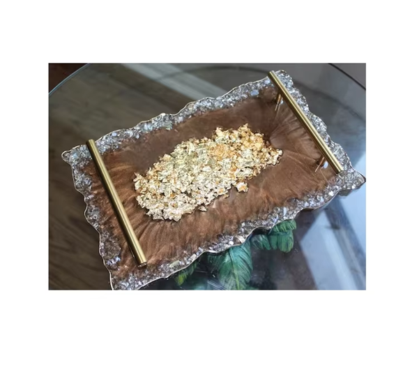 ถาดเสิร์ฟทำจากทองเหลืองพร้อมที่รองแก้วสำหรับใส่ชากาแฟและขนมของตกแต่งบ้านทันสมัยและโอกาสพิเศษ