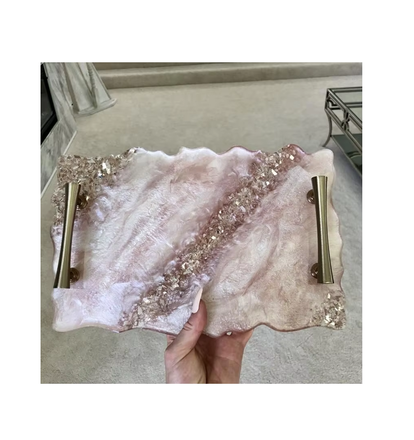 ถาดเสิร์ฟเรซินพร้อมที่จับทองเหลืองถาดรองแก้วทำด้วยมือถาดรองแก้วสำหรับตกแต่งดีไซน์ใหม่ขายดี