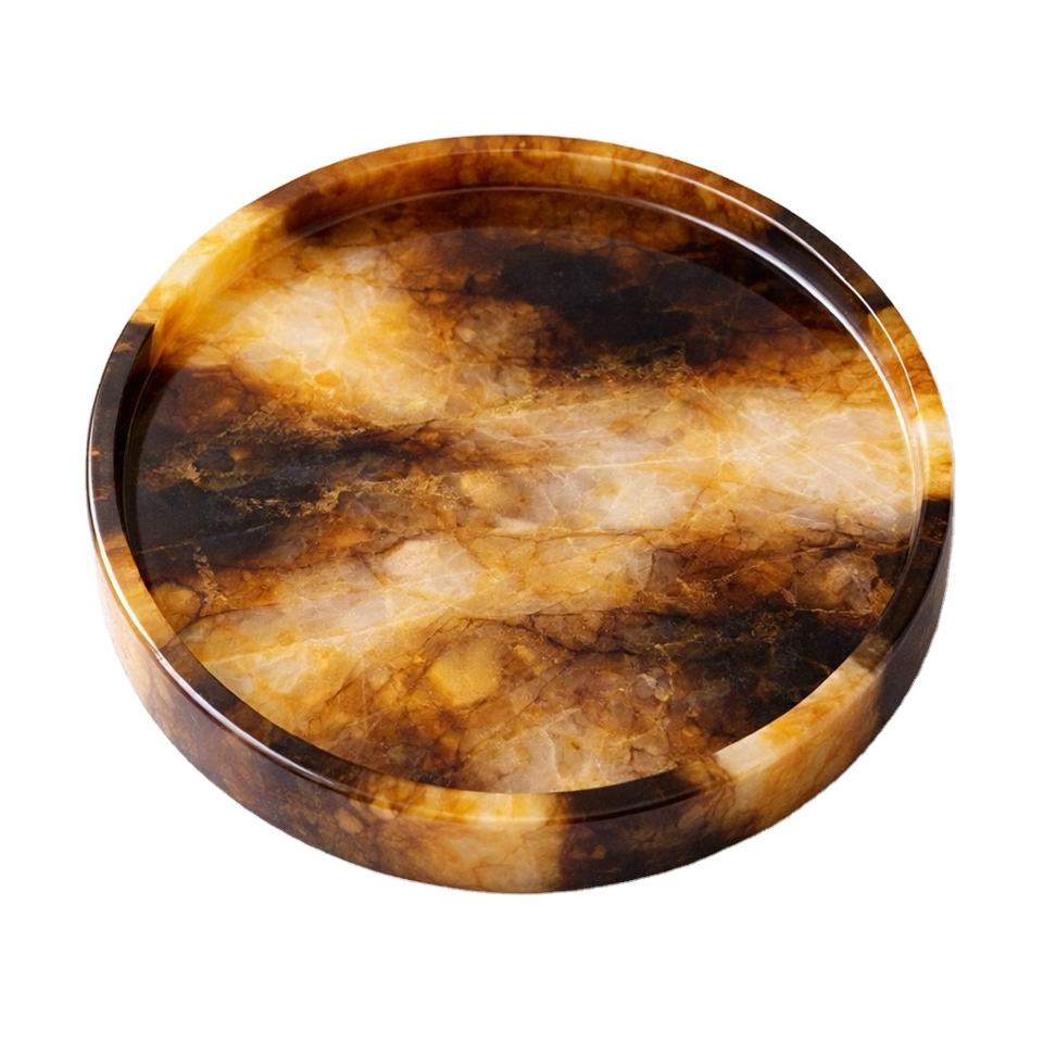 ถาดเสิร์ฟเรซิ่นลายหินอ่อนสีน้ำตาลทรงกลม สำหรับโต๊ะอาหารในครัวและของตกแต่งบ้าน