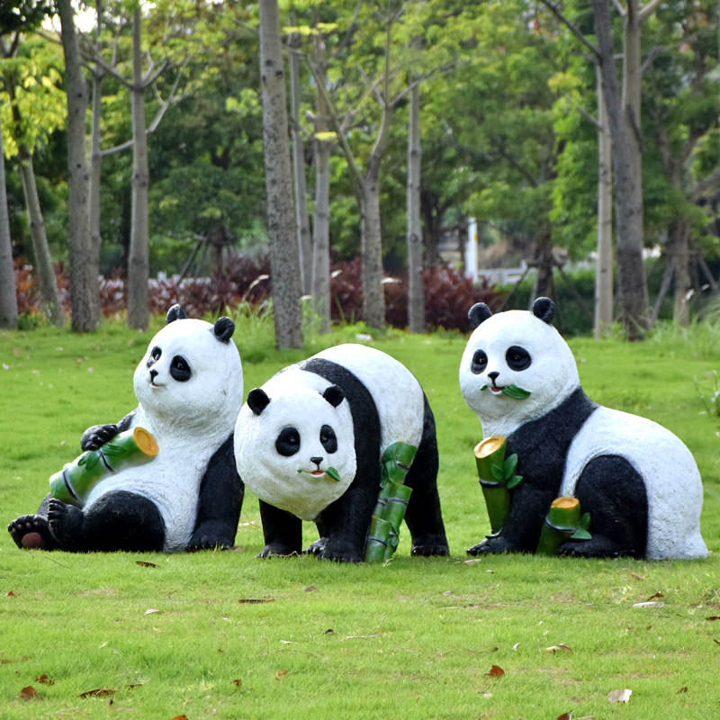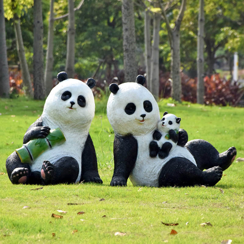 รูปปั้นแพนด้าเรซิ่นจำลอง ของตกแต่งแบรนด์ Panda Welcome สำหรับสวนกลางแจ้ง สนามหญ้า กันน้ำ ตั้งโชว์ได้