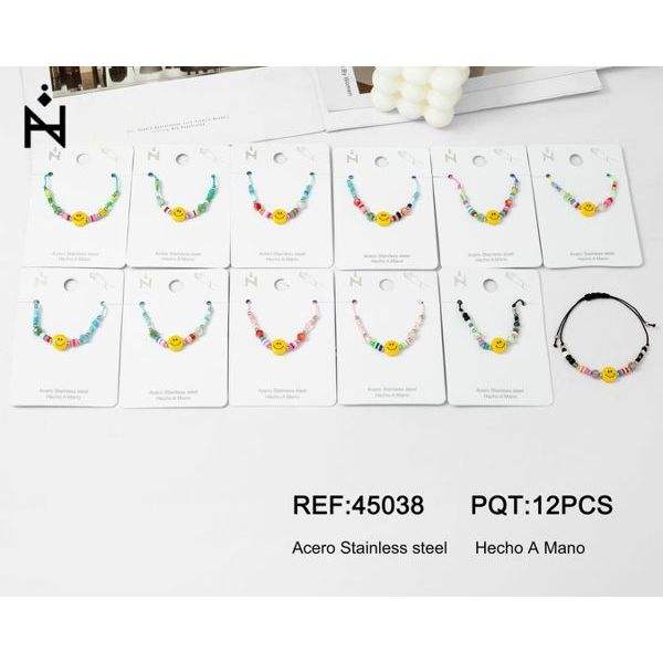 สร้อยข้อมือเรซิ่นรูปหน้ายิ้ม ลูกปัดหลากสี ปรับขนาดได้ งานแฮนด์เมด เครื่องประดับแฟชั่น ชุด 12 ชิ้น ลวดสแตนเลส