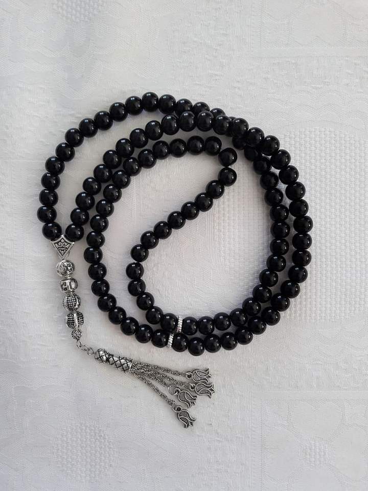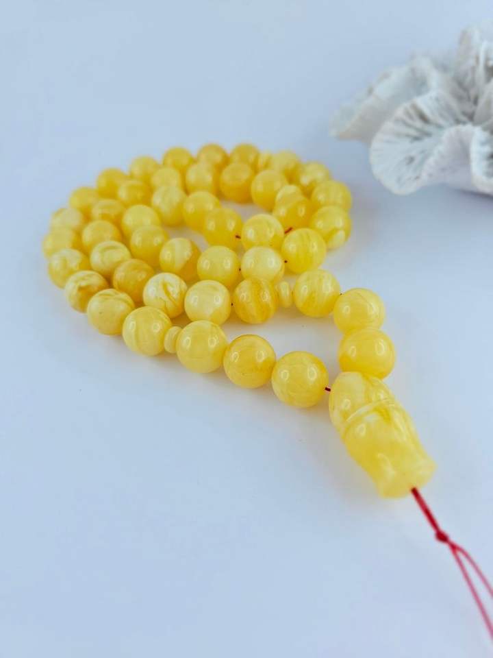 ลูกปัดอำพันอิสลามหลายชิ้นทำจากยางสังเคราะห์