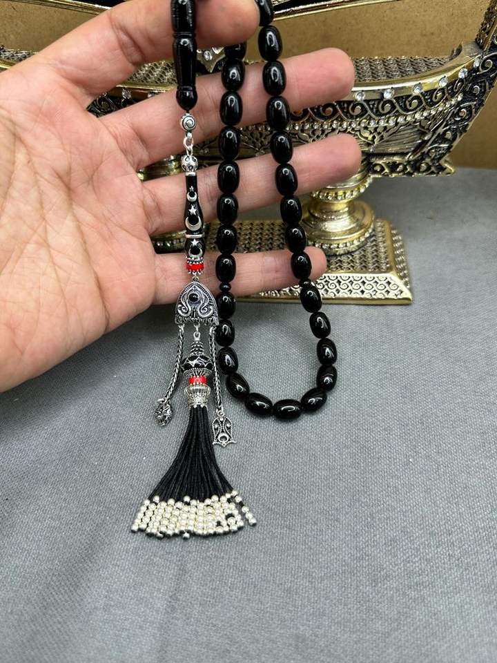 ลูกประคำเรซิ่นขัดเงา มิสบาฮ์ 33 เม็ด รุ่นสำหรับผู้ชายมุสลิม สายประคำมาสต์กาน ของขวัญอิสลามสำหรับวันอีด ทำด้วยมือ กันน้ำ ทัสบีฮ์ เตสบีฮ์