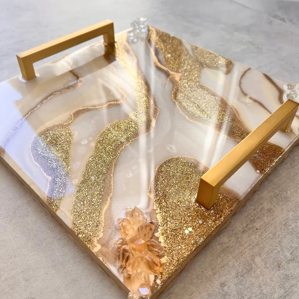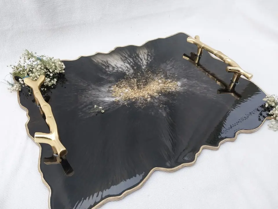 ถาดเรซินสำหรับเสิร์ฟชากาแฟบนโต๊ะในห้องครัวของโรงแรมถาดเสิร์ฟชาทำด้วยมือ