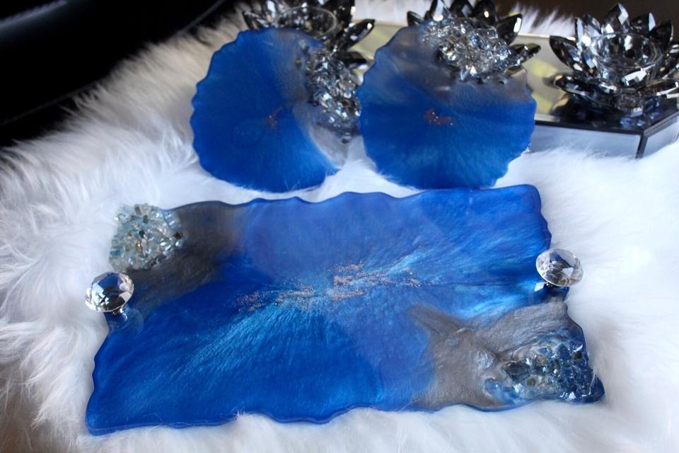 ถาดเรซิ่นพร้อมที่รองแก้ว งานแฮนด์เมด ปรับแต่งได้ ชุดตกแต่งสำหรับห้องนั่งเล่นและสำนักงาน ดีไซน์เรียบง่าย
