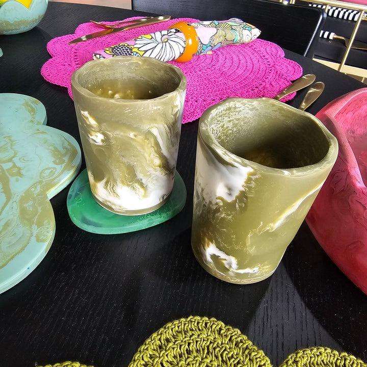 แก้วน้ำเรซิ่นทำมือ แก้วอีพ็อกซี่ดีไซน์สวย สีเขียว สำหรับใช้ในบ้าน ห้องครัว สำนักงาน บาร์ และร้านกาแฟ