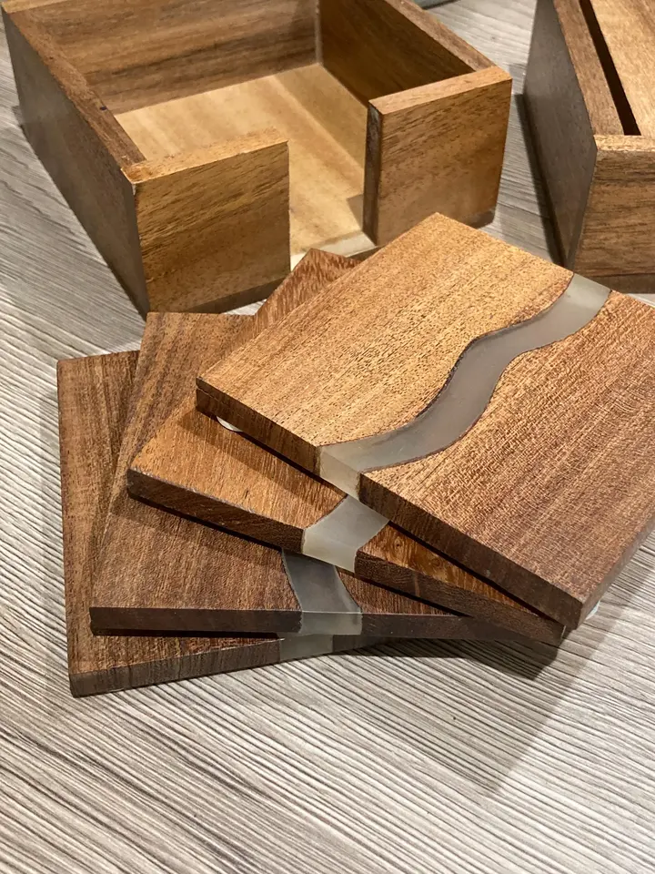 ที่รองแก้วไม้อะคาเซียทำด้วยมือถาดรองแก้วไม้เครื่องดื่มร้อนและเครื่องดื่มเย็นที่มีเอกลักษณ์เฉพาะสำหรับตกแต่งบ้านที่รองแก้ววอลนัท