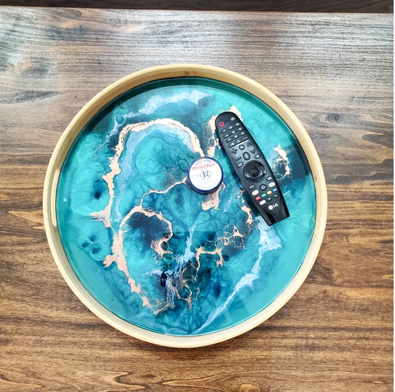 ถาดเสิร์ฟชากาแฟทำจากเรซิ่นและไม้ถาดกลมสำหรับตกแต่งโต๊ะในบ้านดีไซน์ทันสมัยไม่เหมือนใคร