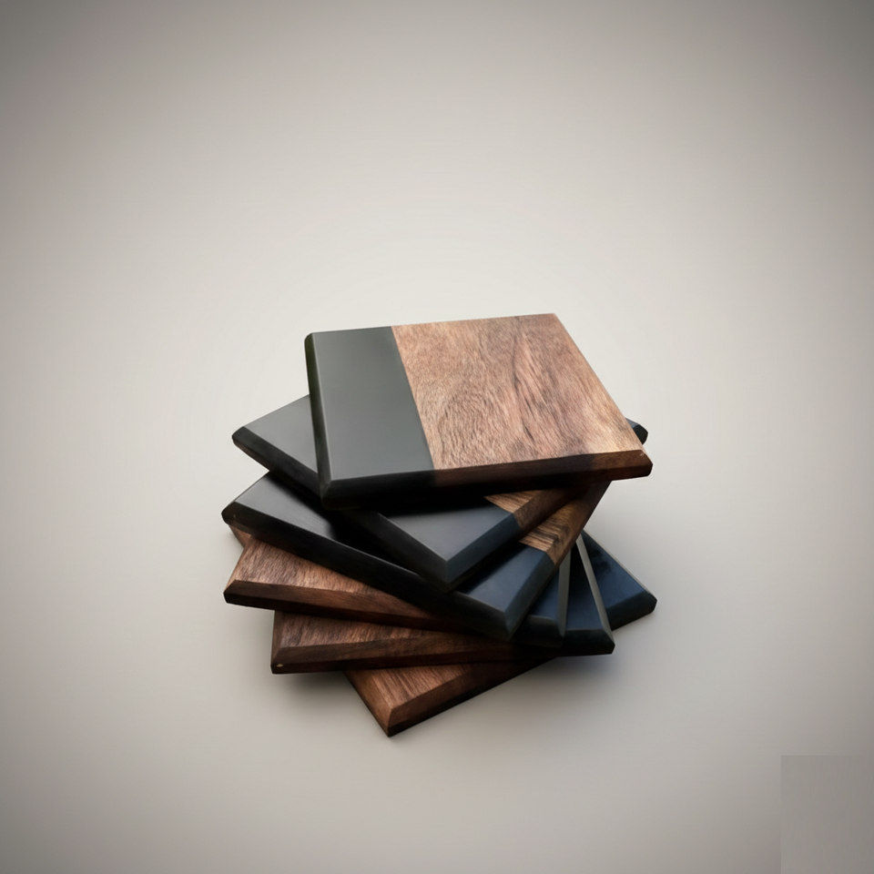 ชุดจานรองแก้วเรซิ่นลายไม้สไตล์อาร์ตเดโค งานแฮนด์เมดสุดพิเศษสำหรับตกแต่งโต๊ะกาแฟ/ชา ของขวัญสำหรับรอมฎอนและงานแต่งงานสำหรับตกแต่งบ้าน