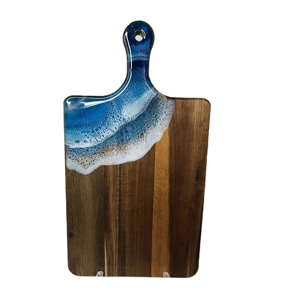 กระดานเสิร์ฟชีสเรซิ่น & ผักไม้/ถาดชาร์คิวรี่จานไม้เลเซอร์โลโก้ทรงสี่เหลี่ยมผืนผ้าออกแบบได้ตามต้องการ