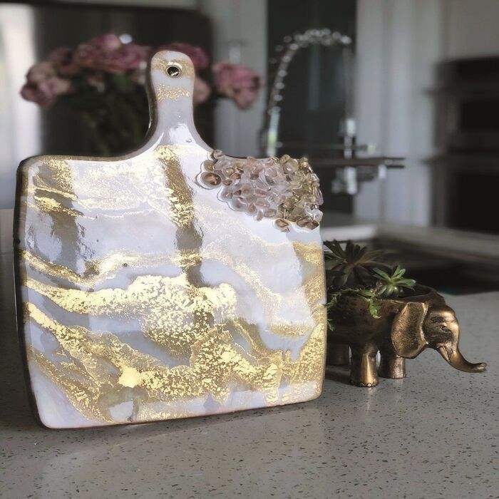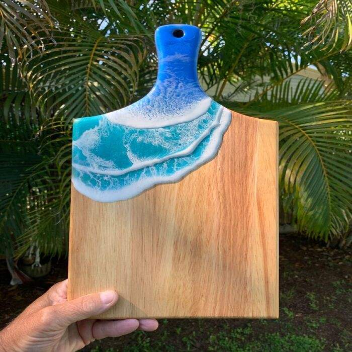 เขียงทำจากเรซิ่นเส้นแม่น้ำเรซินใสทำด้วยมือจากไม้เนื้อแข็งที่เหมาะสำหรับการตัดเสิร์ฟและการเตรียมอาหาร