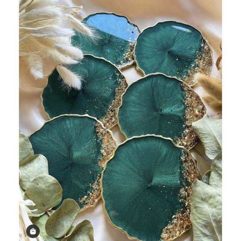 ที่รองแก้วเรซินที่มีทองคำเปลวและชุดเน้นโลหะ6ชิ้นสำหรับร้านอาหารแบนและบริการอาหารค่ำของโรงแรม