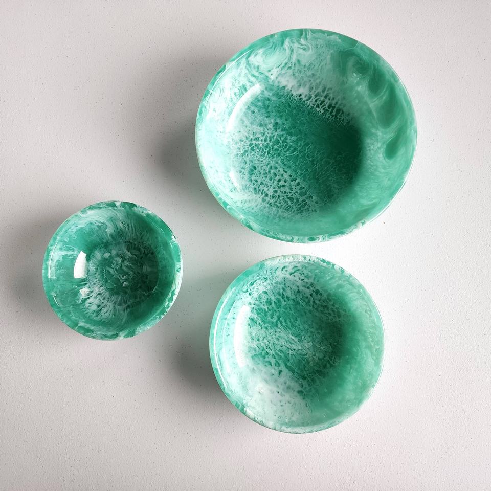 ชุดชามเรซิ่นทำมือ ดีไซน์ทันสมัย ตะกร้าผลไม้สีสันตามสั่ง ทำด้วยมือ