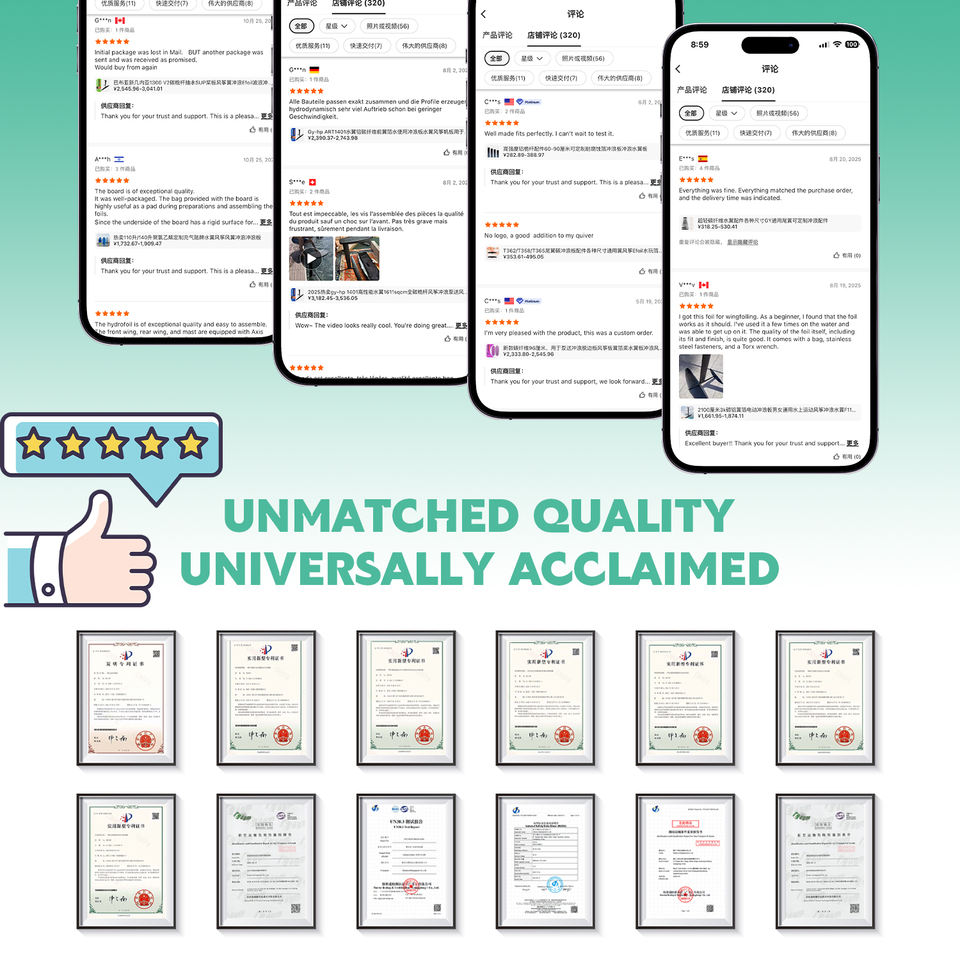 ปีกไฮโดรฟอยล์หน้าแบบตอบสนองเร็ว Spitfire 1180 คาร์บอนวิง สำหรับการเลี้ยวที่ราบรื่นและการเล่นคาร์ฟฟอยล์ เหมาะสำหรับนักเล่นวิงฟอยล์ระดับสูง