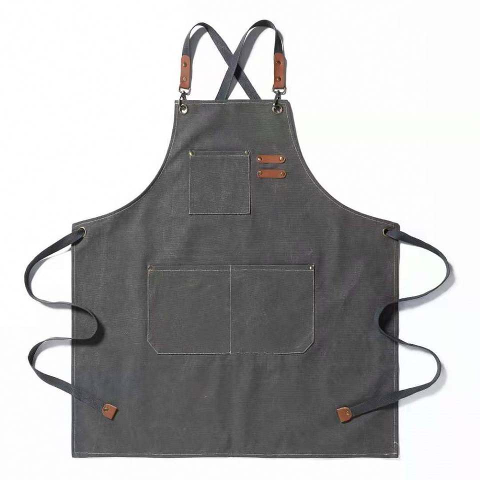 เครื่องแบบบาร์คาเฟ่แบบแขนกุดมี3ช่องผ้าแคนวาสสำหรับใช้ในห้องครัว