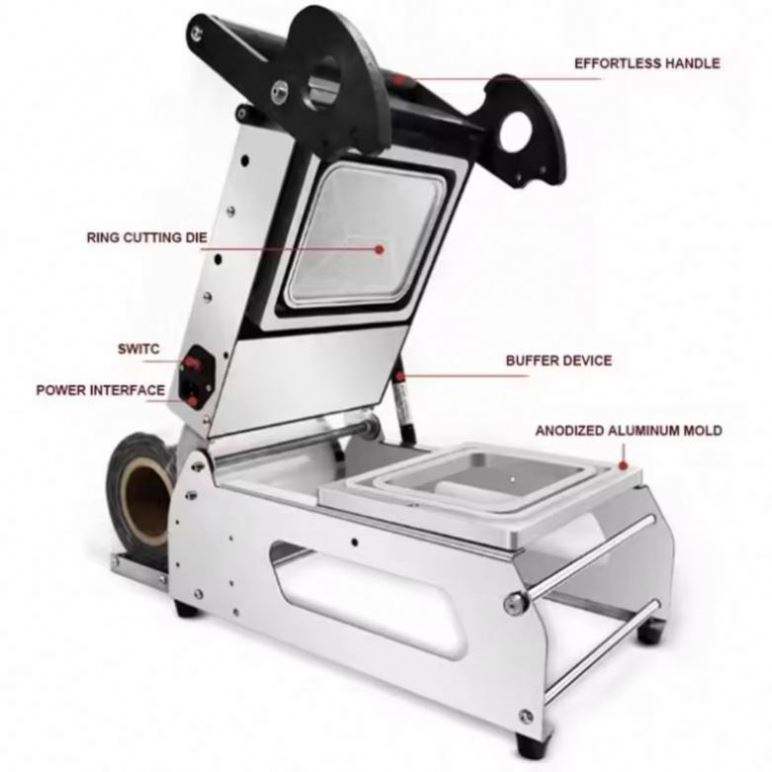 กล่องพลาสติกสำหรับบรรจุอาหารร้านอาหาร กล่องอาหารแบบนำกลับบ้าน กล่องอาหารกลางวัน กล่องอาหารพร้อมรับประทาน เครื่องซีลถาดอาหารแบบใช้มือสำหรับอาหารจานด่วน
