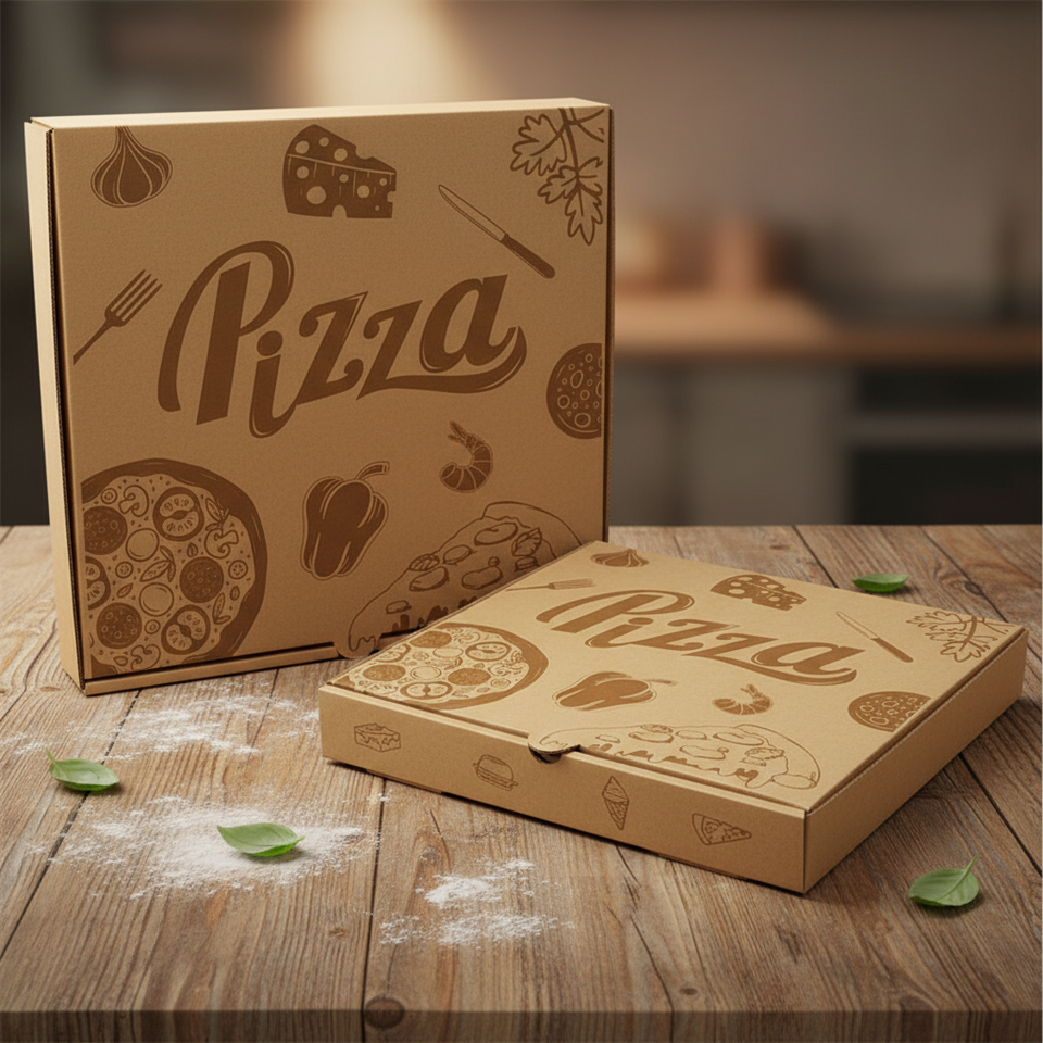 กล่องพิซซ่ากระดาษคราฟท์เกรดร้านอาหาร เป็นมิตรกับสิ่งแวดล้อม รีไซเคิลได้ ย่อยสลายได้ ใช้กับไมโครเวฟได้ ปรับแต่งขนาดได้ บรรจุภัณฑ์อาหาร
