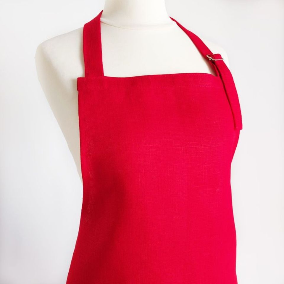 ผ้ากันเปื้อนทำอาหารสีแดงแบบร้านอาหาร ผ้าฝ้าย 100% ใช้ซ้ำได้ สำหรับเชฟมืออาชีพและใช้ในบ้าน