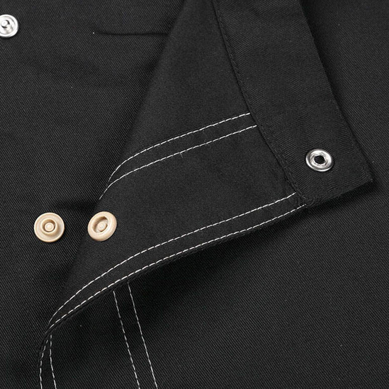 เสื้อเชฟทันสมัยสำหรับร้านอาหาร เสื้อเชิ้ตทำงานผู้หญิงผู้ชาย ป้องกันแสงแดด กระดุม 3 เม็ด เสื้อทำงานผู้ชาย ชุดยูนิฟอร์ม เสื้อเชฟ