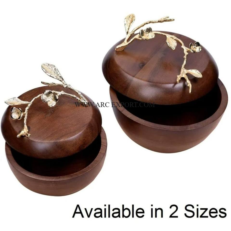 ชามเสิร์ฟอาหารบนโต๊ะอาหารทำจากโลหะถ้วยเสิร์ฟอาหารแฟนซีพร้อมฐานไม้สำหรับใส่อาหารเย็น