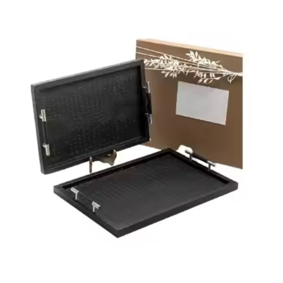 ร้านอาหารบนโต๊ะอาหารถาดเสิร์ฟอาหารทําจากถาดเสิร์ฟอาหารสแตนเลสพร้อมที่จับไม้ในราคาต่ําสุด
