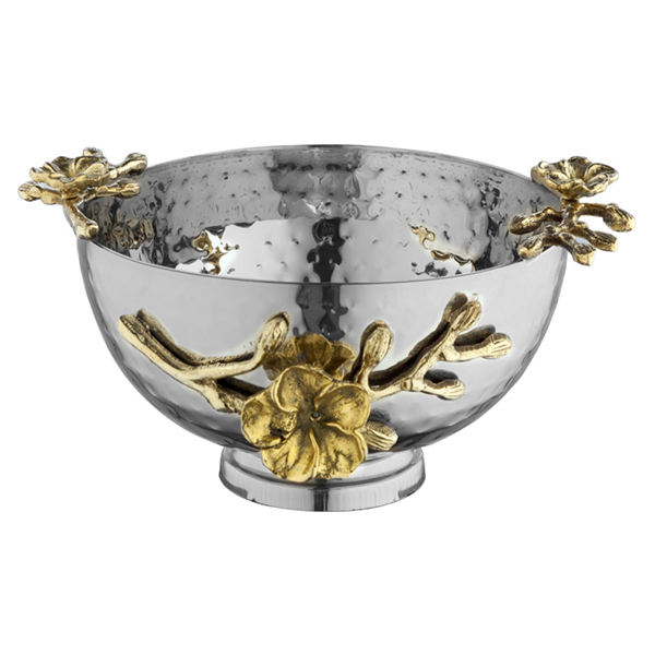 ชุดภาชนะเสิร์ฟอาหารสำหรับร้านอาหาร ทำจากเงินขัดเงา พร้อมลวดลายใบไม้และดอกไม้ทองเหลือง สำหรับเสิร์ฟอาหารแสนอร่อย