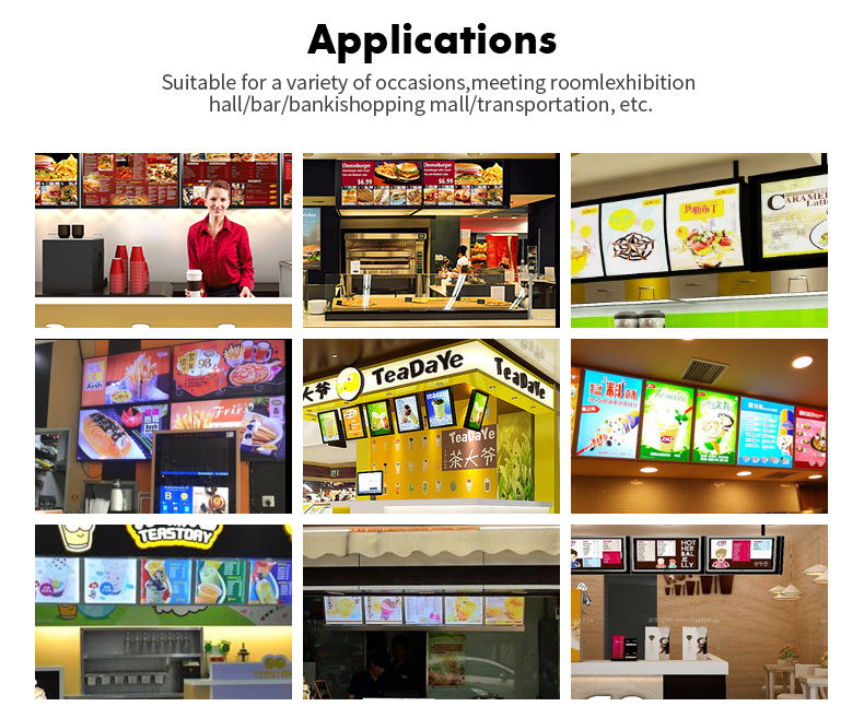 บอร์ดติดผนังจอแอลซีดีติดเพดาน32 "43inch55Inch ในบ้านบอร์ดโฆษณาแอนดรอยด์บอร์ดเมนูดิจิตอลสำหรับร้านอาหาร