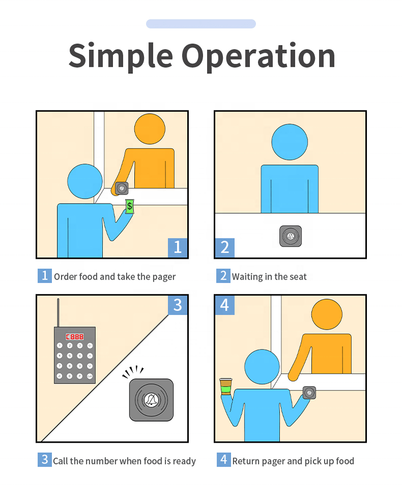 อุปกรณ์เรียกคิวอาหารแบบสั่นสำหรับร้านอาหาร ระบบเรียกคิวไร้สายสำหรับรับอาหารบนโต๊ะอาหาร
