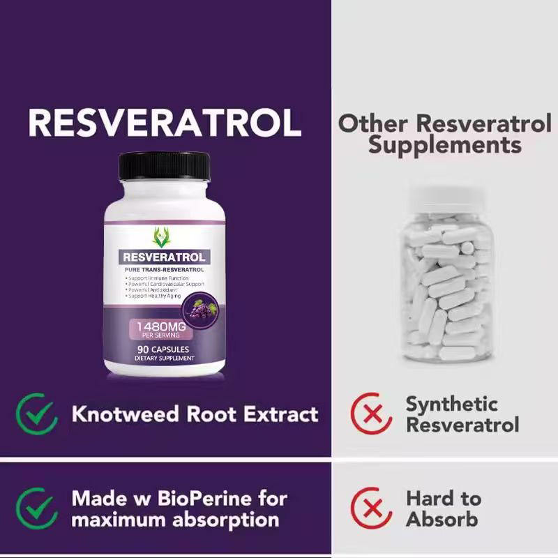 แคปซูลเรสเวอราทรอลสำหรับผู้ใหญ่ สารสกัดจากพริกไทยดำและเควอเซติน 100% จากธรรมชาติ เสริมสร้างภูมิคุ้มกัน สุขภาพหัวใจและหลอดเลือด สารต้านอนุมูลอิสระ