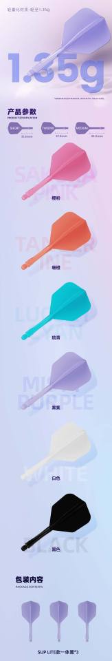 ชุดลูกดอกพลาสติก Caliburn Sup Lite Series น้ำหนักเบา เป็นมิตรกับสิ่งแวดล้อม สีเดียว ขนาดกลาง 3 ชิ้น
