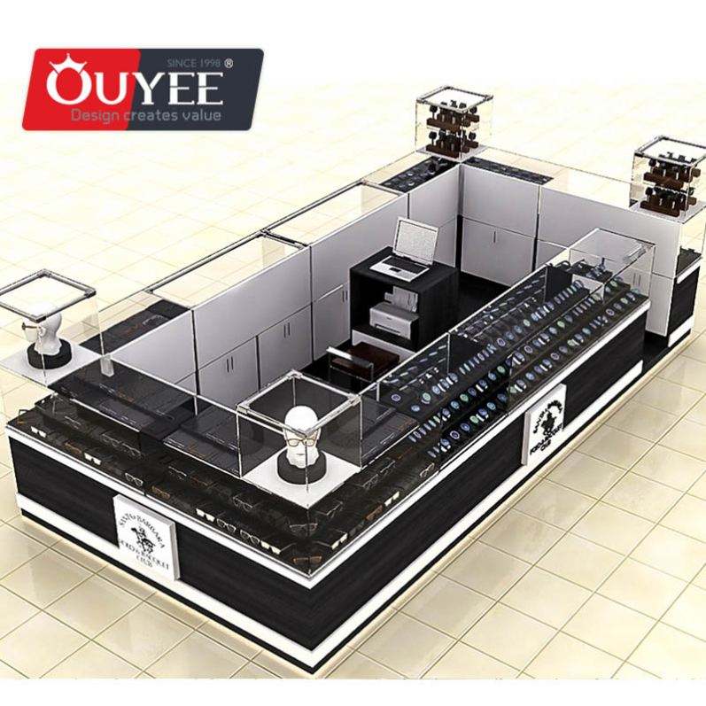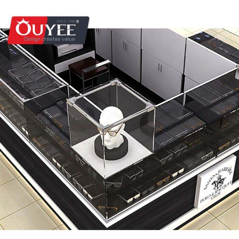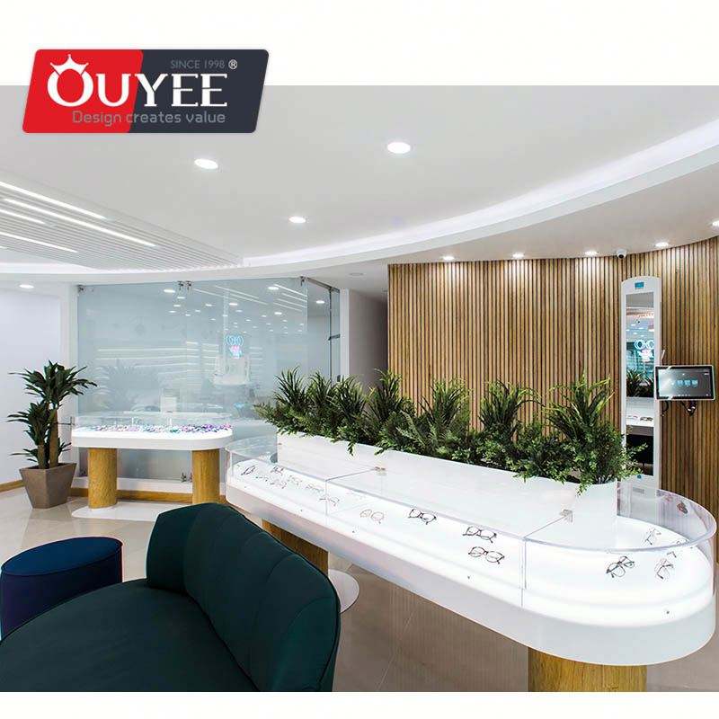ตู้ออปติคอลทำจากไม้สำหรับจัดแสดงที่ออกแบบภายในร้านขายส่ง