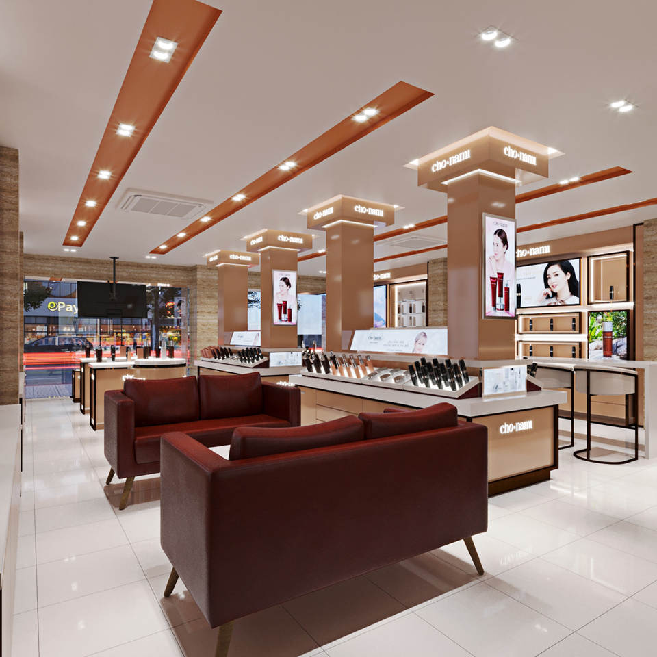 ตู้โชว์น้ำหอมไม้สำหรับร้านค้าขายปลีกชั้นวางของในร้านขายเครื่องสำอางชั้นวางของในร้านออกแบบตกแต่งภายในเฟอร์นิเจอร์บูติกทำจากไม้